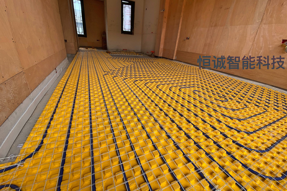 本案采用地源熱泵系統。開發商打好地埋井交付。我司提供了室內部分的設備和施工。制冷采用風機盤管,制熱采用地暖盤管。
